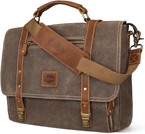 Laptop Messenger bag for Mens 15.6 Inch, Waterproof Vintage Genuine Leather Mens Briefcase shoulder bag 16 Storage Pockets,