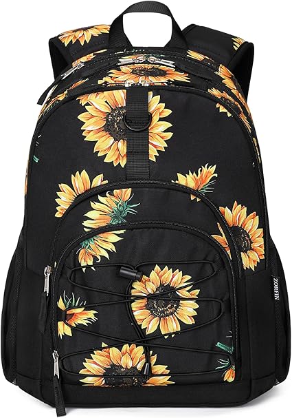 Backpack for School Travel: Bookbag for Girls Boys - Laptop Backpack with Multiple Compartments - Sunflower