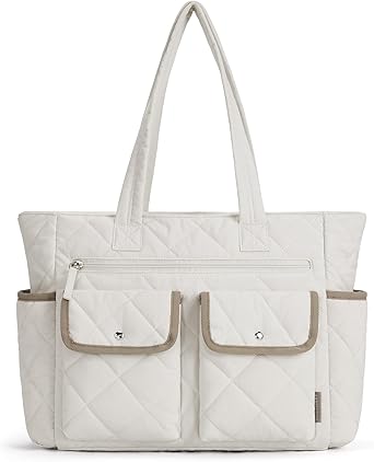 Tote Bag for Women, Tote Bag for Travel with Multi-Pocket, Large Puffy Bag Quilted for Travel, Work, Gym, Shop