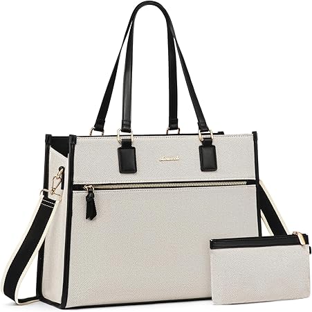 Laptop Bag for Women 15.6 inch Work Bags for Women Professional Jute Computer Tote Bag Large Capacity Handbag with Clutch Purse